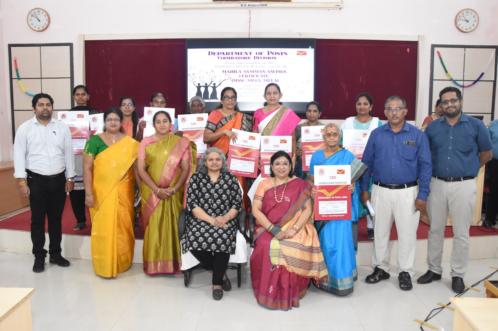 Ms. J.Charukesi CPMG handing over the passbooks of Mahila Saman Saving Certificate at coimbatore on 19.04.2023